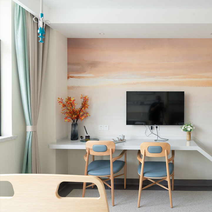 在专业营养师的指导下,配备星级厨师团队和专业点心师,采用最优质的新鲜当季食材,针对不同患者情况,合理营养搭配,个性化点餐,为患者提供营养全面、丰富,色香味俱全的早、中、晚餐以及午后点心 。